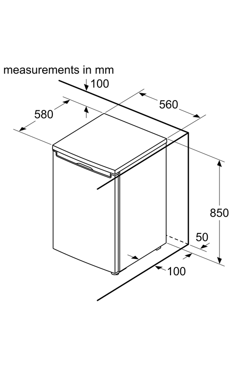 - Fridge features: 2 safety glass shelves, salad crisper drawer