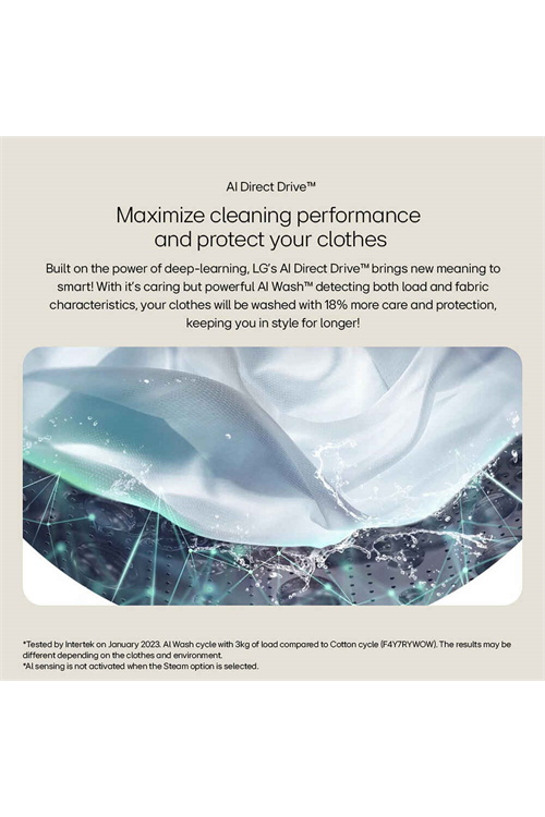 - AI Direct Drive™: Detects load weight and fabric type to optimise washing motions